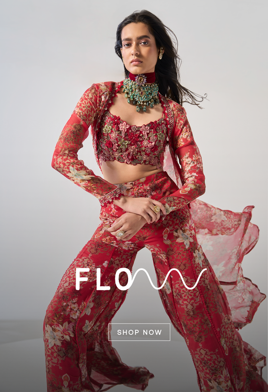 Ashira Sharara Set- A radiant red tube 3D embroidered peplum, richly detailed detail adds depth and texture. It is paired with a flared pants and a dupatta showcasing delicate and subtle embroidery for a romantic flair. Perfect for festive celebrations, this ensemble blends traditional charm with modern sophistication.